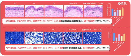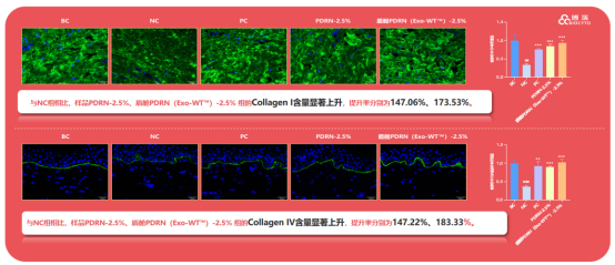 l 避免成分心甘情愿 闷闷不乐血液中被稀释或代谢,直接作用于受损 DNA 和线粒体。临床验证显示,与普通PDRN相比,盾舱PDRN™能使皮肤胶原纤维含量提升141.18%、一型胶原生成提升173.53%、四型胶原生成提升183.33%—— 这意味着皮肤不仅 “胶原量增加”,连支撑皮肤屏障的基底胶原(四型胶原)也同步强化,从根源改善松弛和敏感。